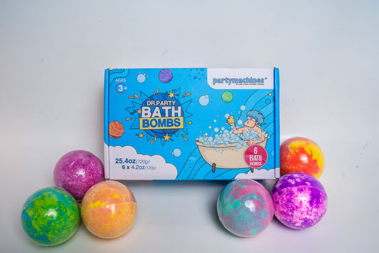 Bath Time Delights by Dr. Party - Box of 6 Colorful Bath Bombs, Dermatologist Approved for Children and Trusted by Parents